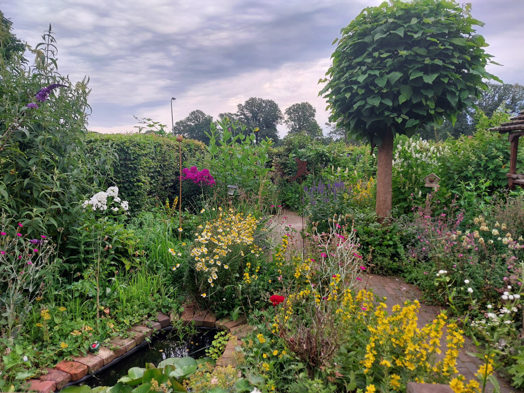 Vier tuinen aan de rand van Hengelo. Het eigenzinnige eraan is dat iedere bewoner wel een eigen tuin heeft, maar dat jaren geleden besloten is, de tuinen voor elkaar zichtbaar open te houden. Door het ontbreken van heggen en schuttingen kunnen de bewoners het hele jaar op elkaars tuin kijken. En daarmee ook op het mooie achterliggende landschap van Driene. Ook zaaien we gezamenlijk in het voorjaar een strook wilde bloemenzaad in op een stuk grond langs de Koppelleiding. Deze zomer kunnen de bewoners én wandelaars weer genieten van het bloemenbed en niet onbelangrijk, van de vlinders en de bijen.